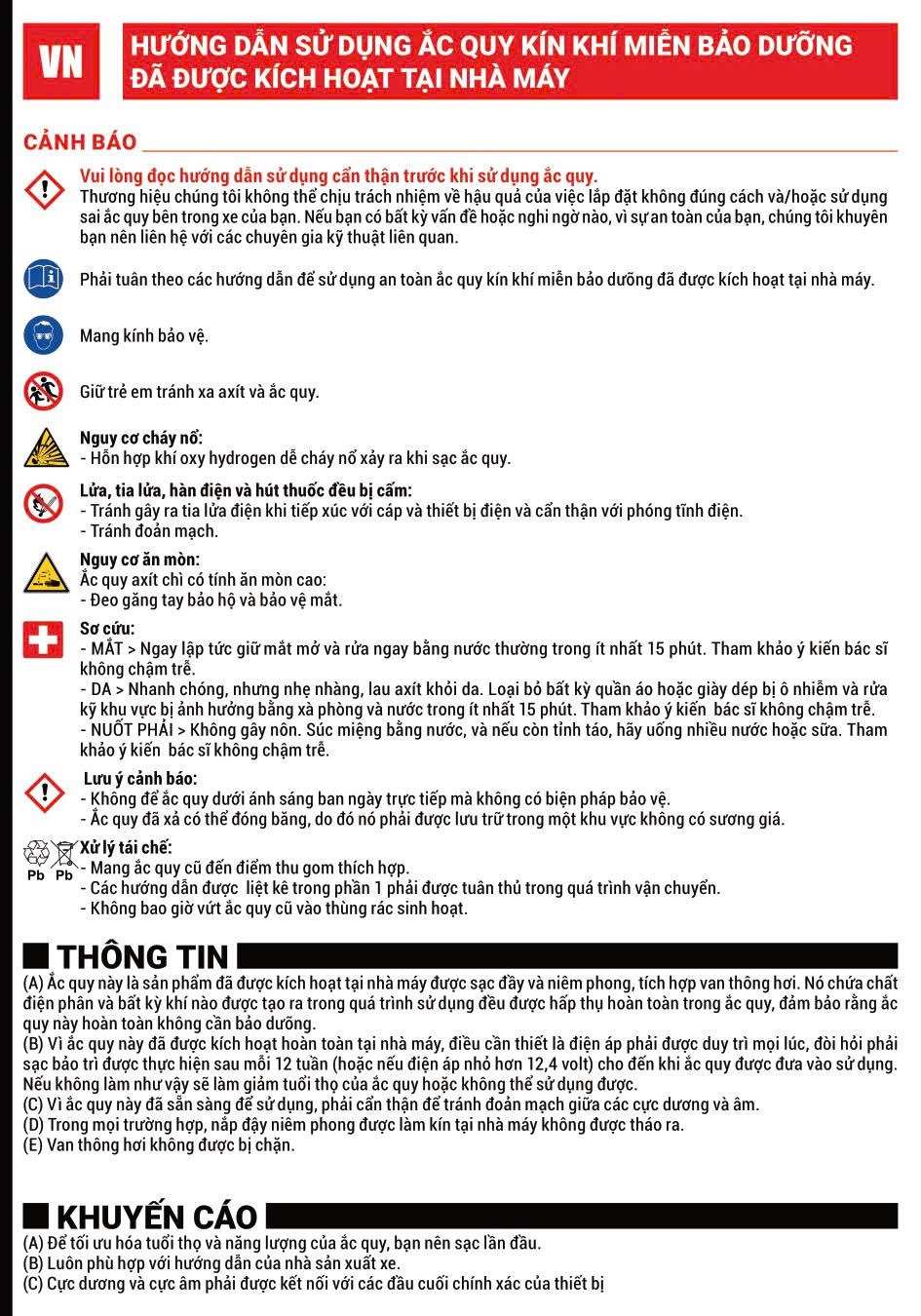 - Công nghệ: AGM (Absorbent Glass Mat)