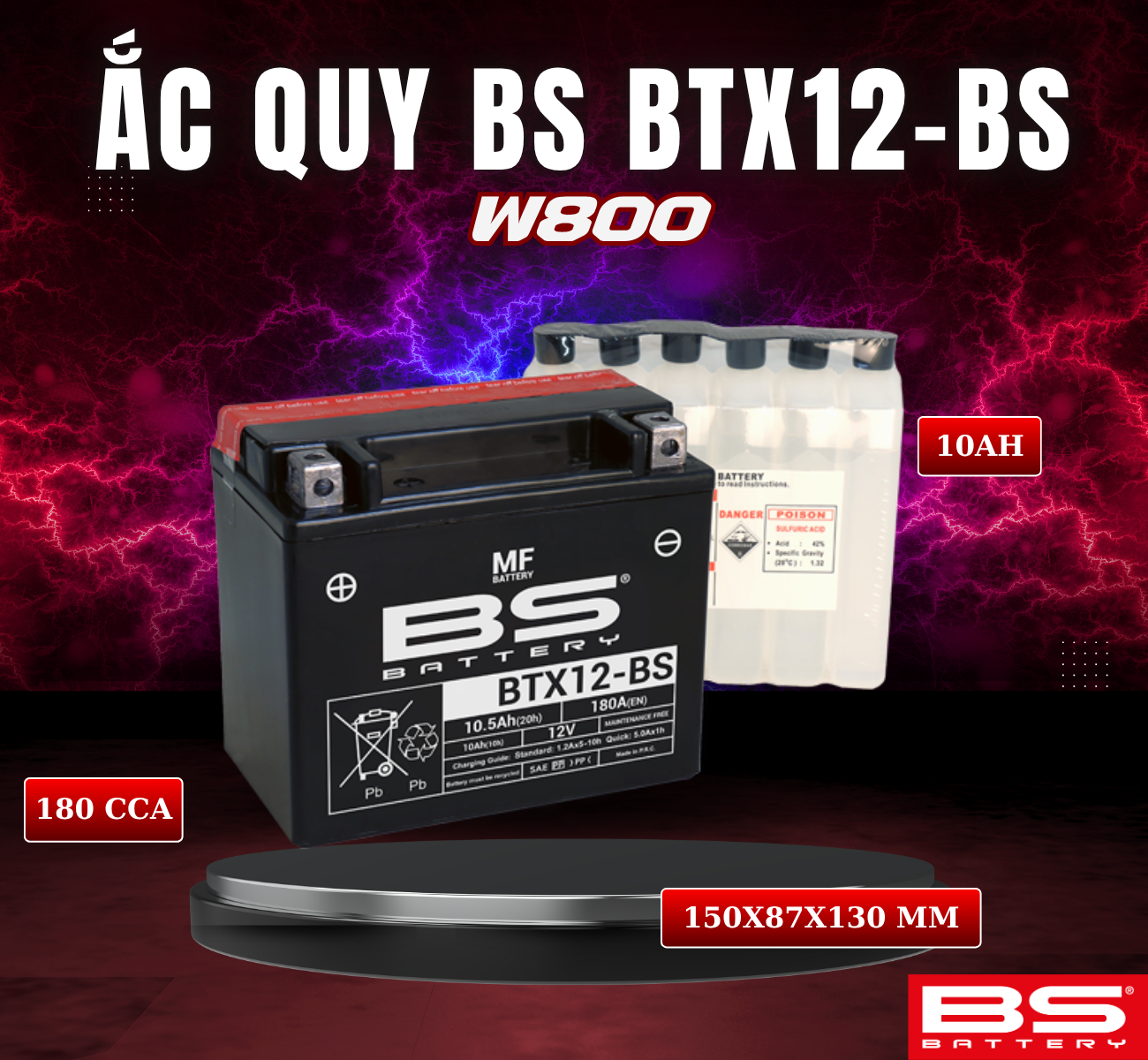 - Với thiết kế kín hoàn toàn, ắc quy BTZ10S-BS không rò rỉ axit, đảm bảo an toàn khi sử dụng và thân thiện với môi trường. Chất lượng cao cấp Được phát triển theo quy trình sản xuất tiên tiến và được thiết kế theo quy trình kiểm soát chất lượng nghiêm ngặt, cơ sở sản xuất BS BATTERY tuân thủ các tiêu chuẩn và chứng nhận quốc tế cao nhất như: Bình ắc quy BS Battery BTZ10S-BS phù hợp với nhiều dòng xe máy và mô tô phổ biến trên thị trường, bao gồm: