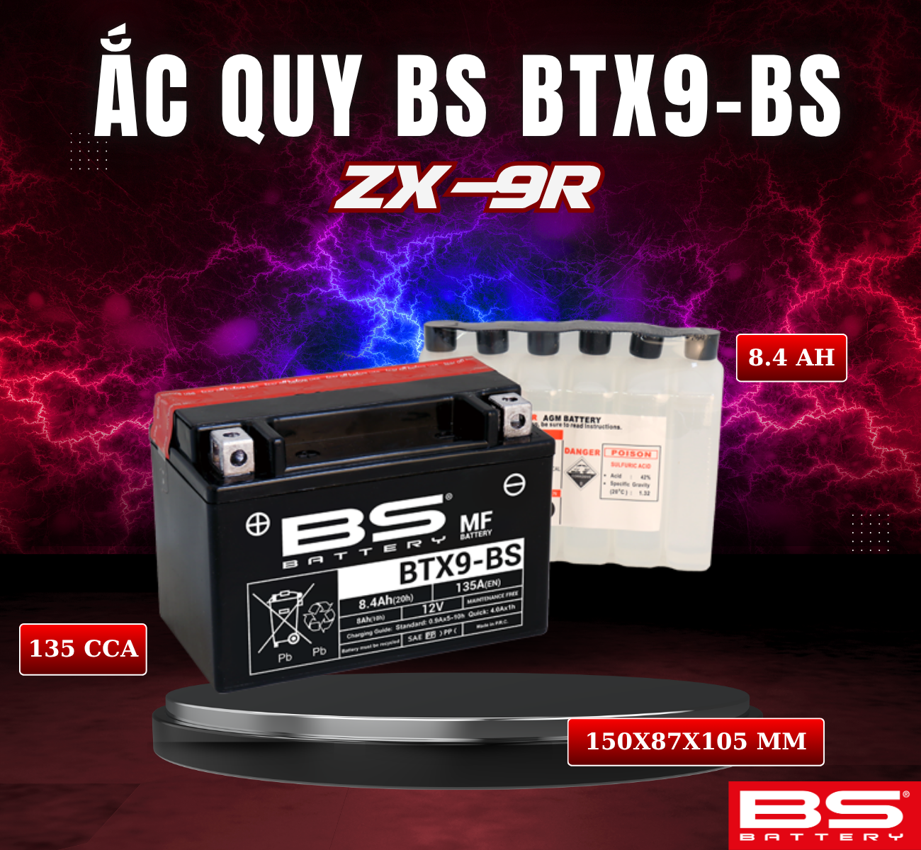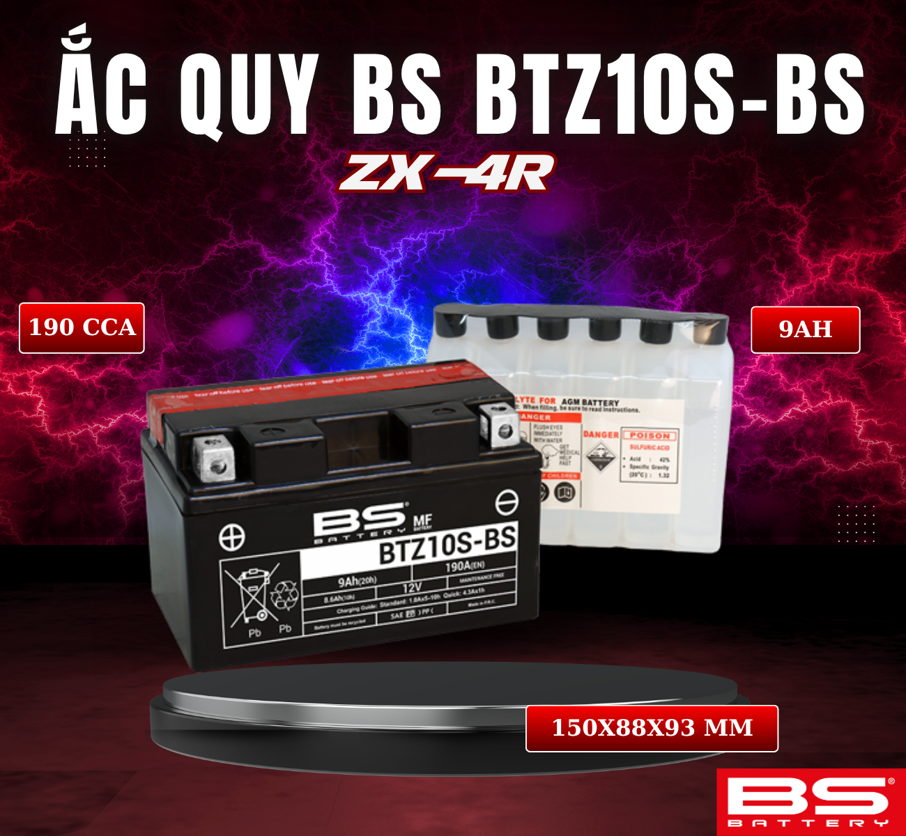 BÌNH ẮC QUY BS BATTERY BTZ10S-BS 190CCA KAWASAKI ZX-4R (150 x 88 x 93 mm)