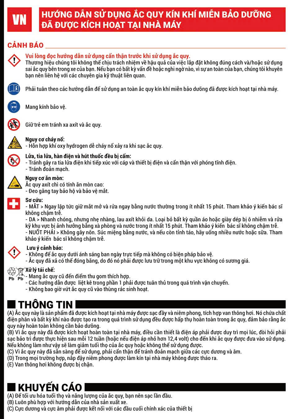 - Công nghệ: AGM (Absorbent Glass Mat)