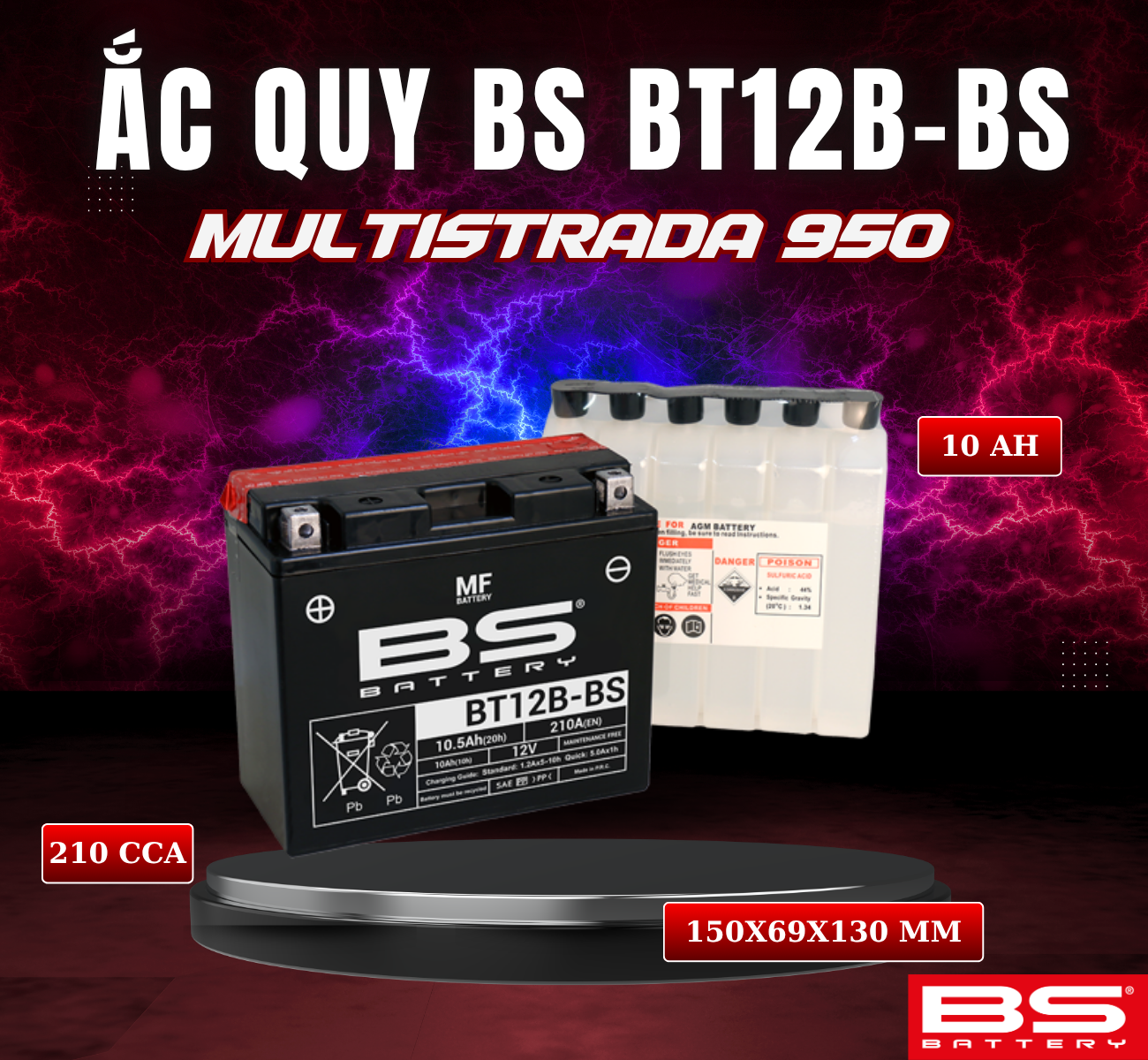 BÌNH ẮC QUY BS BT12B-BS 210CCA DUCATI MULTISTRADA 950 (150x69x130 mm)