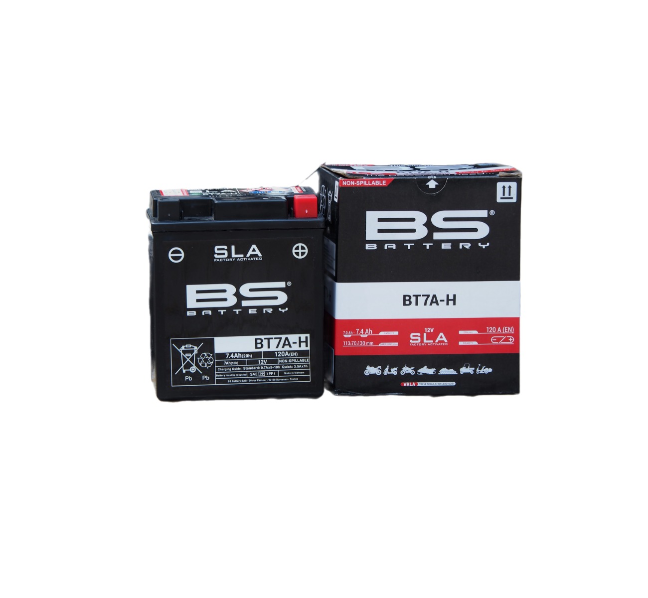 - Với thiết kế kín hoàn toàn, ắc quy BT7A-H không rò rỉ axit, đảm bảo an toàn khi sử dụng và thân thiện với môi trường. Chất lượng cao cấp Được phát triển theo quy trình sản xuất tiên tiến và được thiết kế theo quy trình kiểm soát chất lượng nghiêm ngặt, cơ sở sản xuất BS BATTERY tuân thủ các tiêu chuẩn và chứng nhận quốc tế cao nhất như: 4. Bình ắc quy BS Battery BT7A-H phù hợp với nhiều dòng xe máy và mô tô phổ biến trên thị trường, bao gồm: