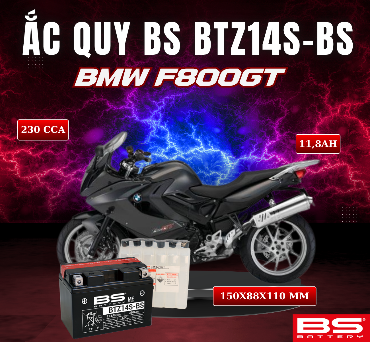 BÌNH ẮC QUY BS BTZ14-BS 230CCA BMW F800GT(150x88x110 mm)