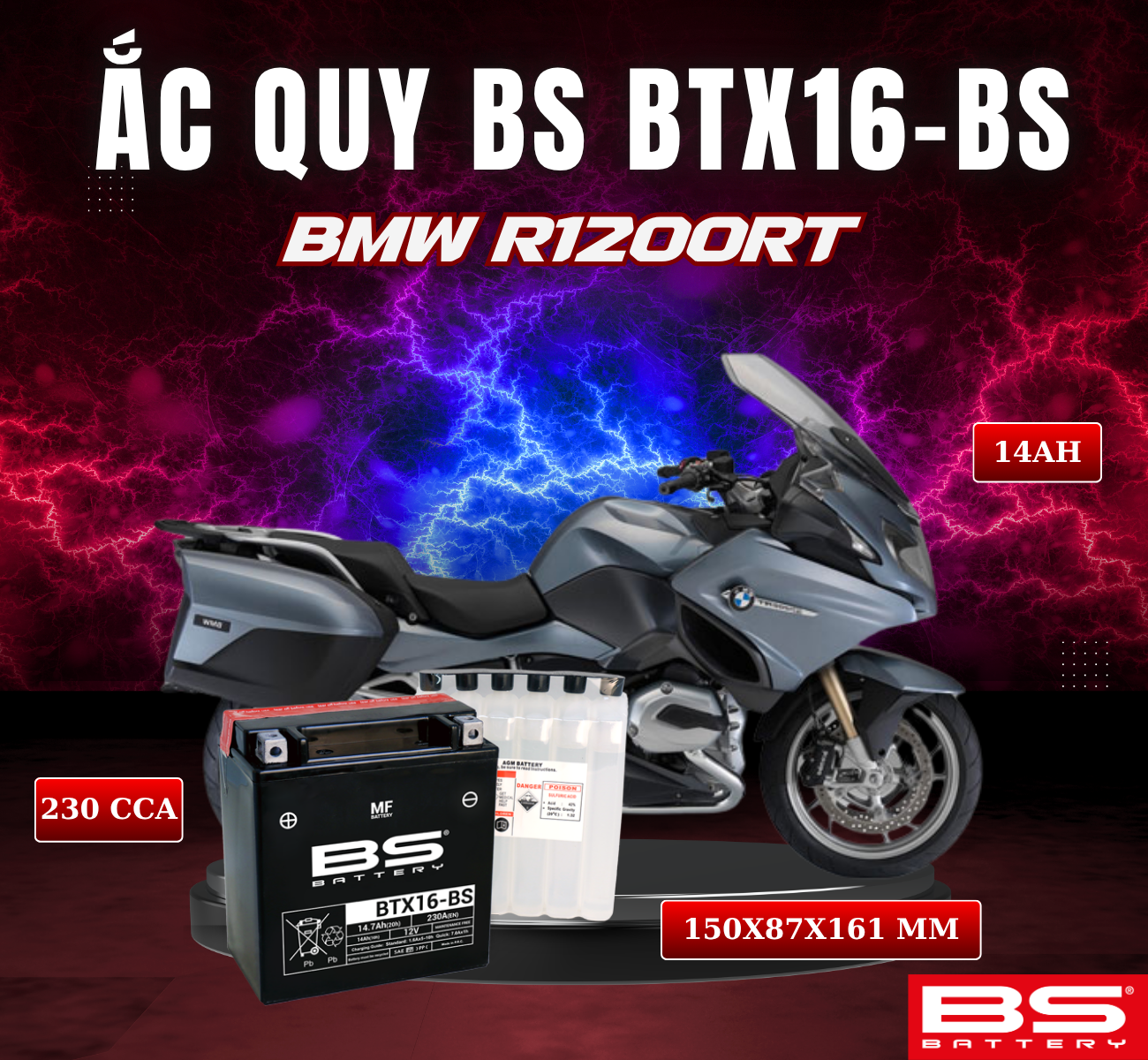 BÌNH ẮC QUY BS BTX16-BS 230CCA BMW R1200RT (150x 87x 161mm)