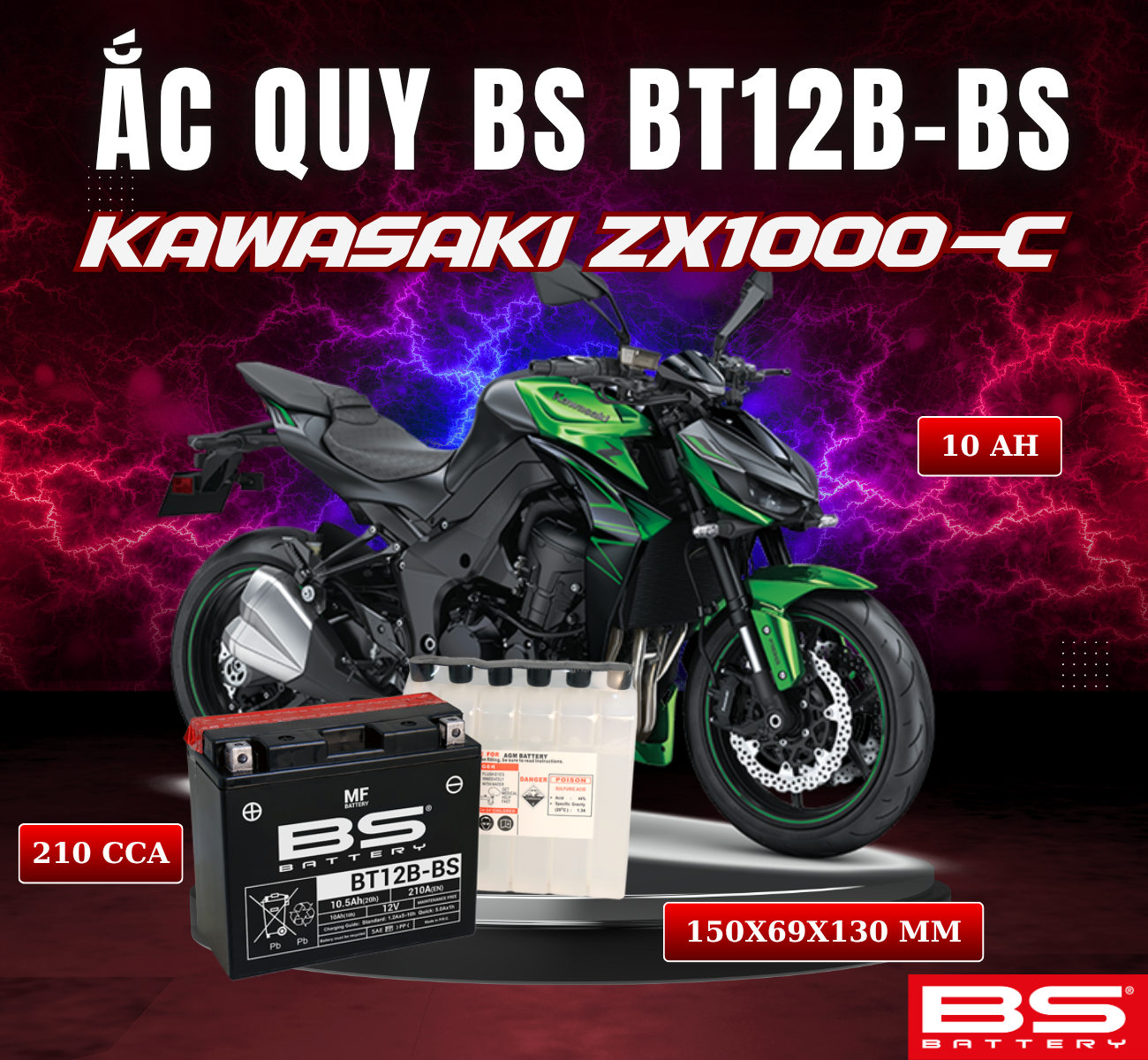 BÌNH ẮC QUY BS BT12B-BS 210CCA KAWASAKI ZX1000-C (150x69x130 mm)