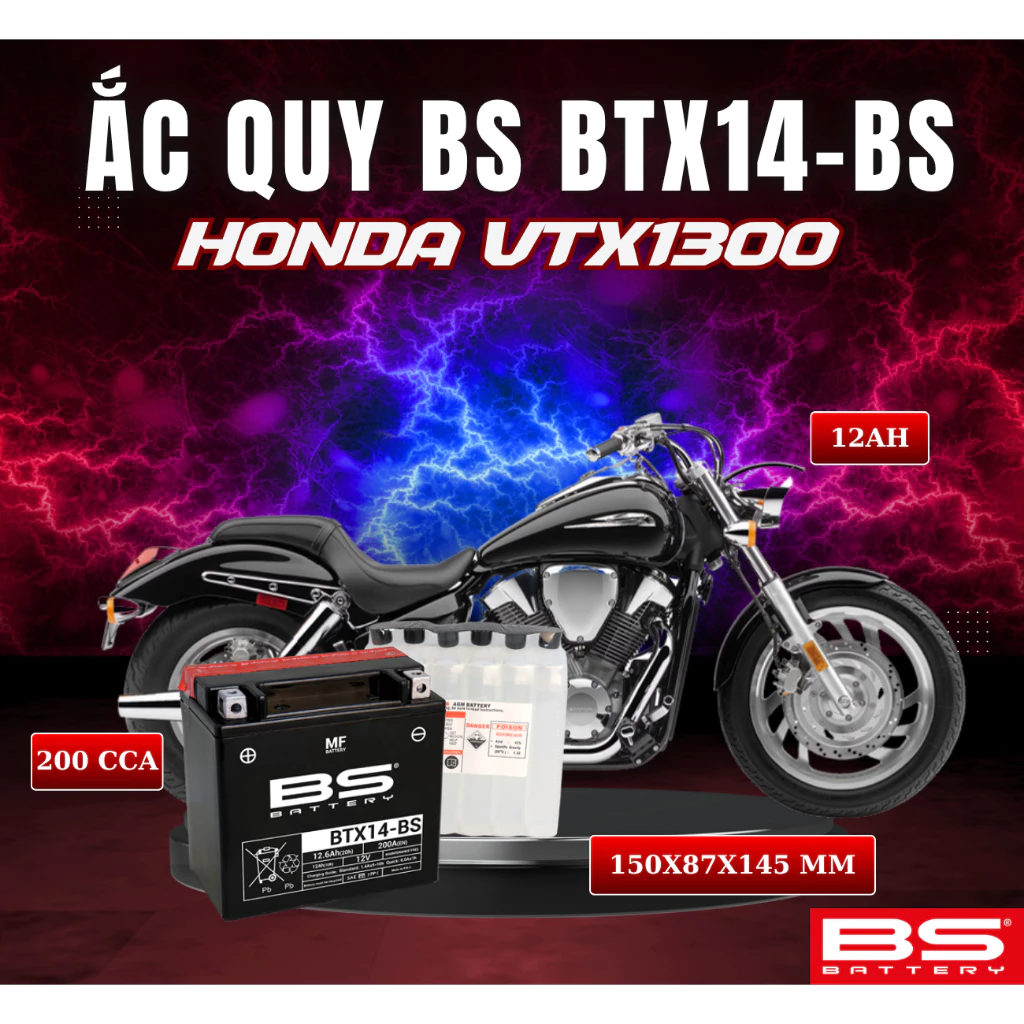 BÌNH ẮC QUY BS BTX14-BS 200CCA HONDA VTX1300 (150x87x145 mm)