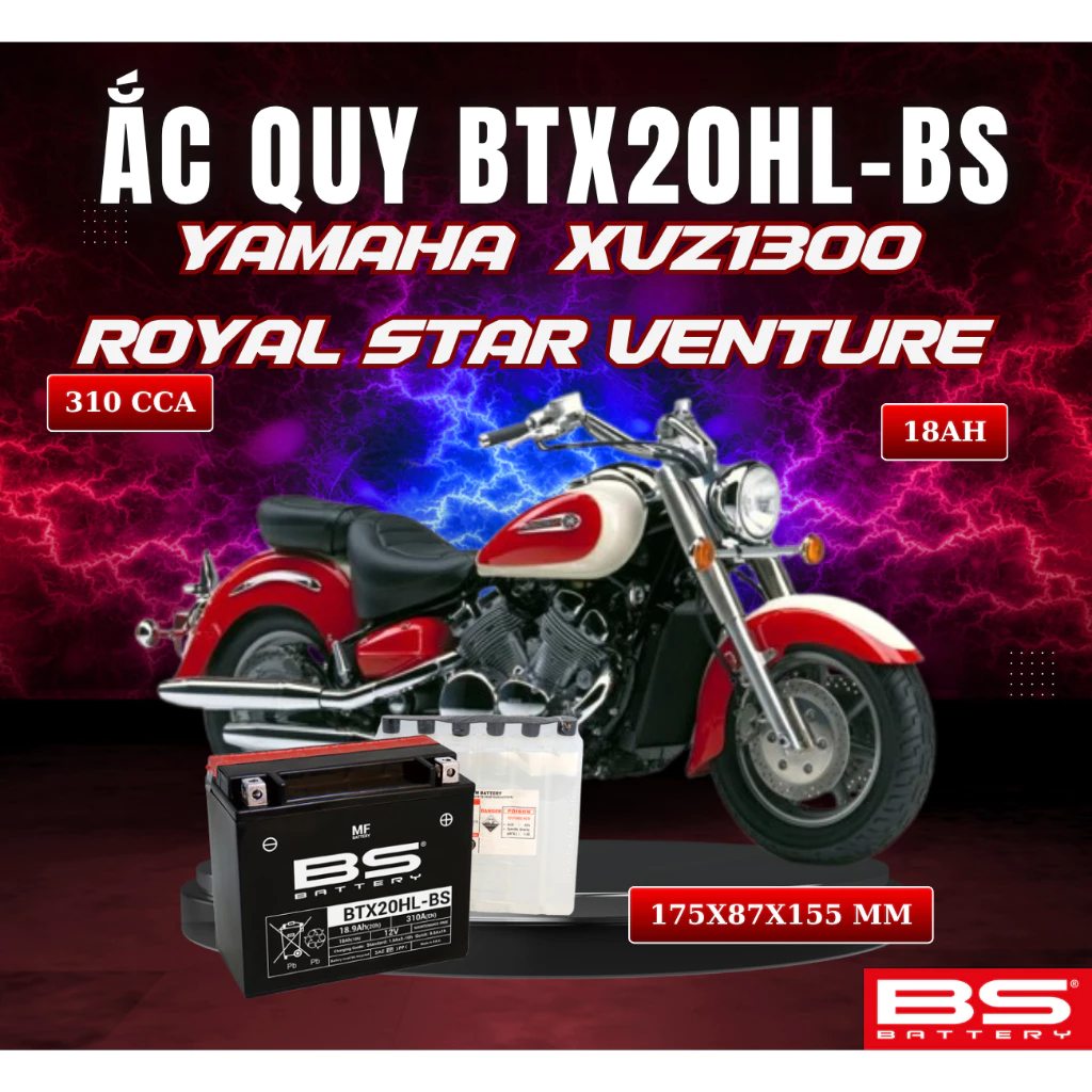 BÌNH ẮC QUY BS BTX20HL-BS 310CCA YAMAHA XVZ1300 ROYAL STAR VENTURE (175x87x155 mm)