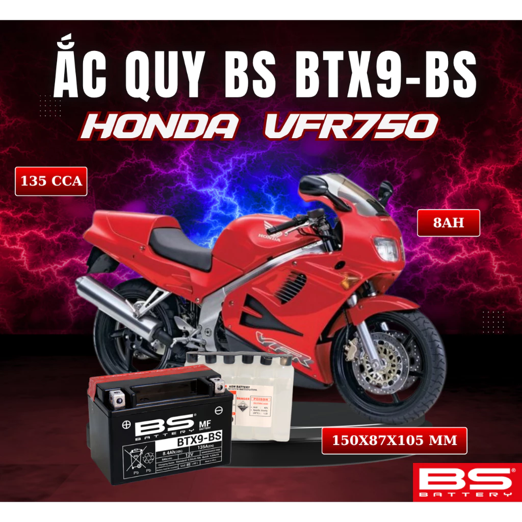 BÌNH ẮC QUY BS BATTERY BTX9-BS 135CCA HONDA VFR750 (150 x 87 x 105 mm)