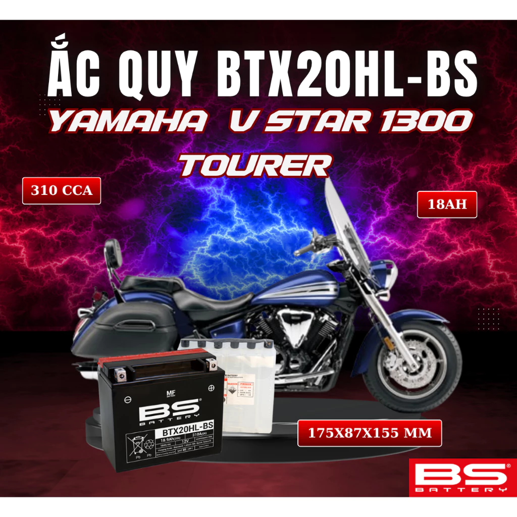 BÌNH ẮC QUY BS BTX20HL-BS 310CCA YAMAHA V STAR 1300 TOURER (175x87x155 mm)