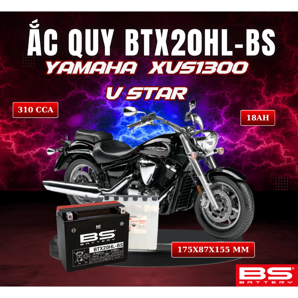 BÌNH ẮC QUY BS BTX20HL-BS 310CCA YAMAHA XVS1300 V STAR (175x87x155 mm)