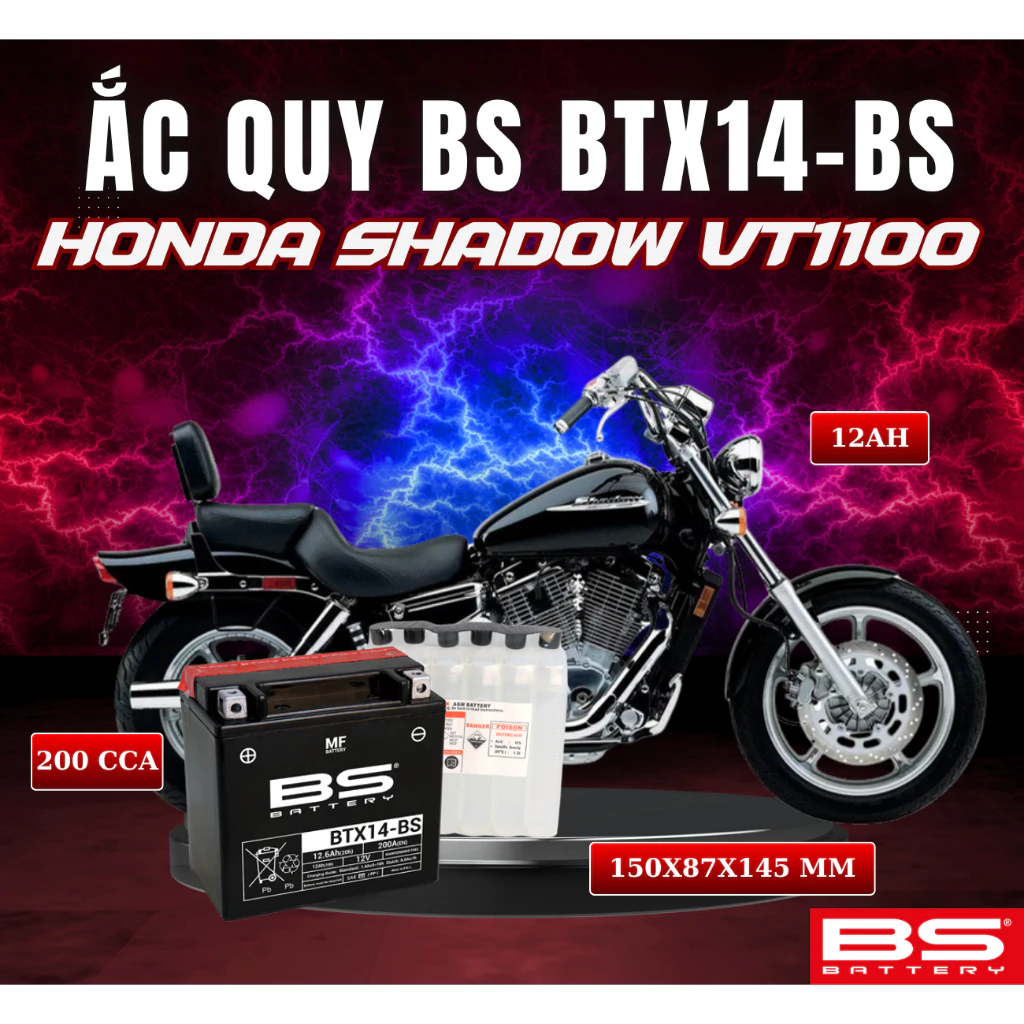 BÌNH ẮC QUY BS BTX14-BS 200CCA HONDA SHADOW VT1100 (150x87x145 mm)
