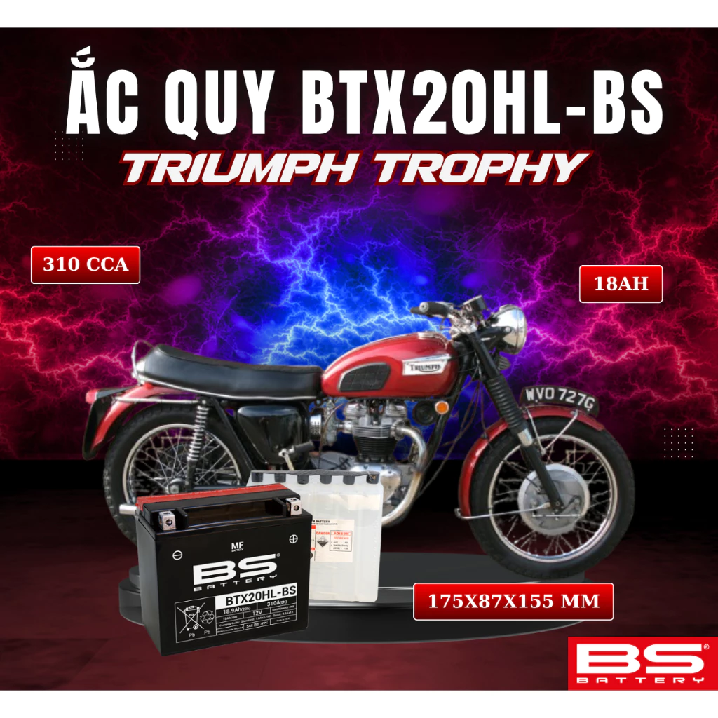 BÌNH ẮC QUY BS BTX20HL-BS 310CCA TRIUMPH TROPHY (175x87x155 mm)