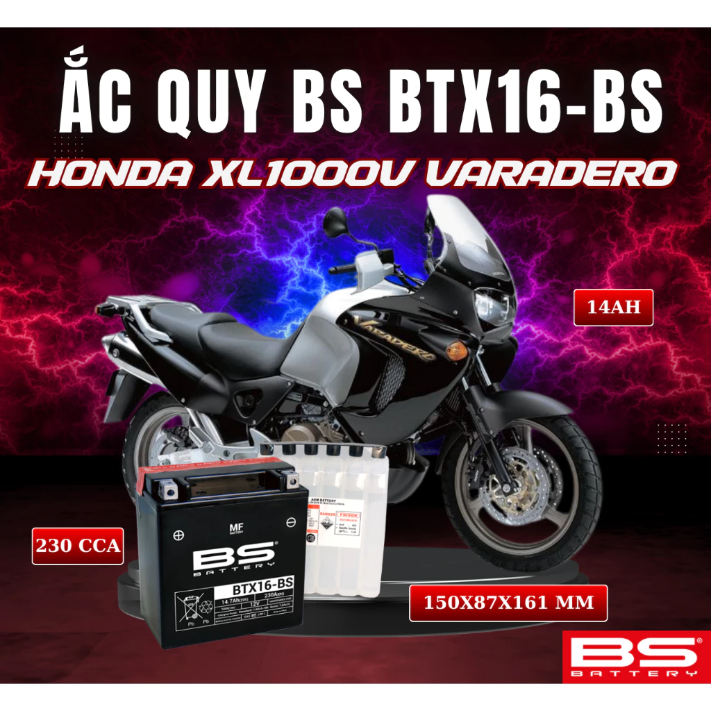 BÌNH ẮC QUY BS BTX16-BS 230CCA HONDA XL1000V VARADERO (150x 87x 161mm)