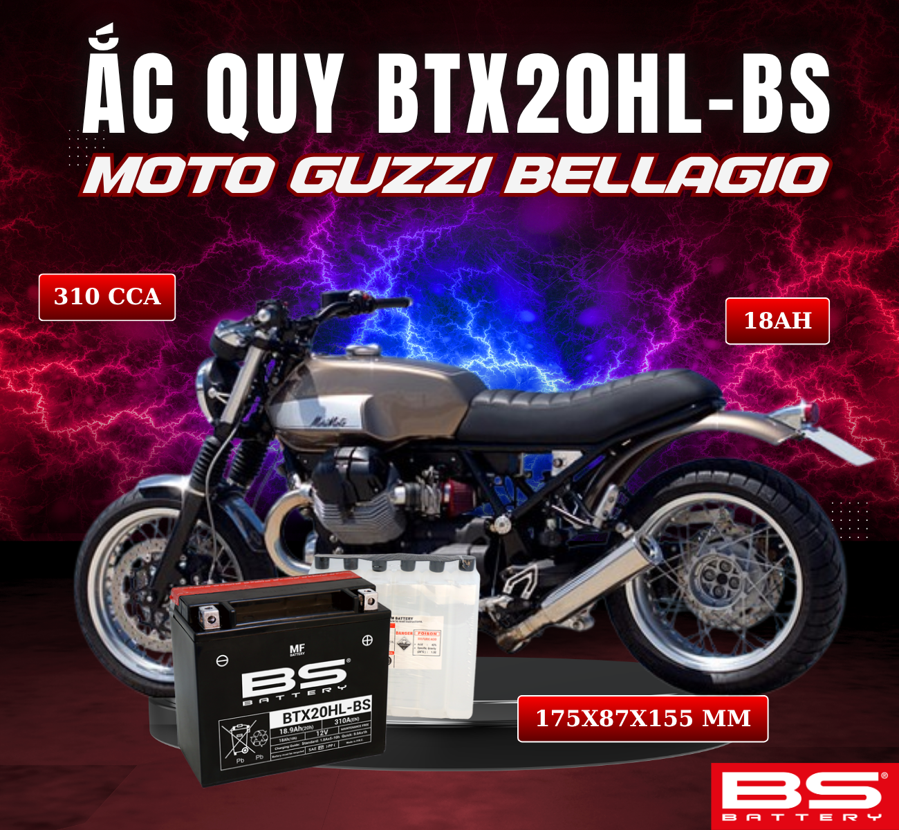 BÌNH ẮC QUY BS BTX20HL-BS 310CCA MOTO GUZZI BELLAGIO(175x87x155 mm)