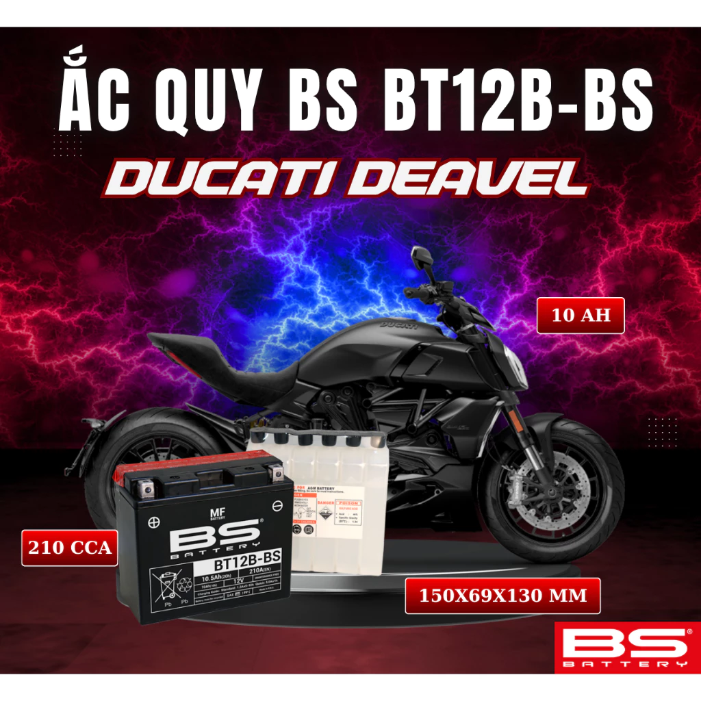 BÌNH ẮC QUY BS BT12B-BS 210CCA DUCATI DEAVEL (150x69x130 mm)