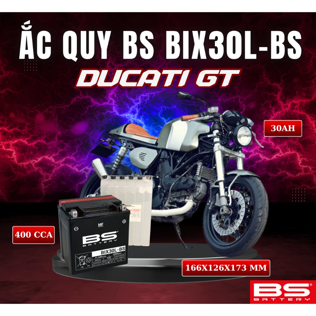 BÌNH ẮC QUY BS BIX30L-BS 400CCA DUCATI GT (166x126x173 mm)