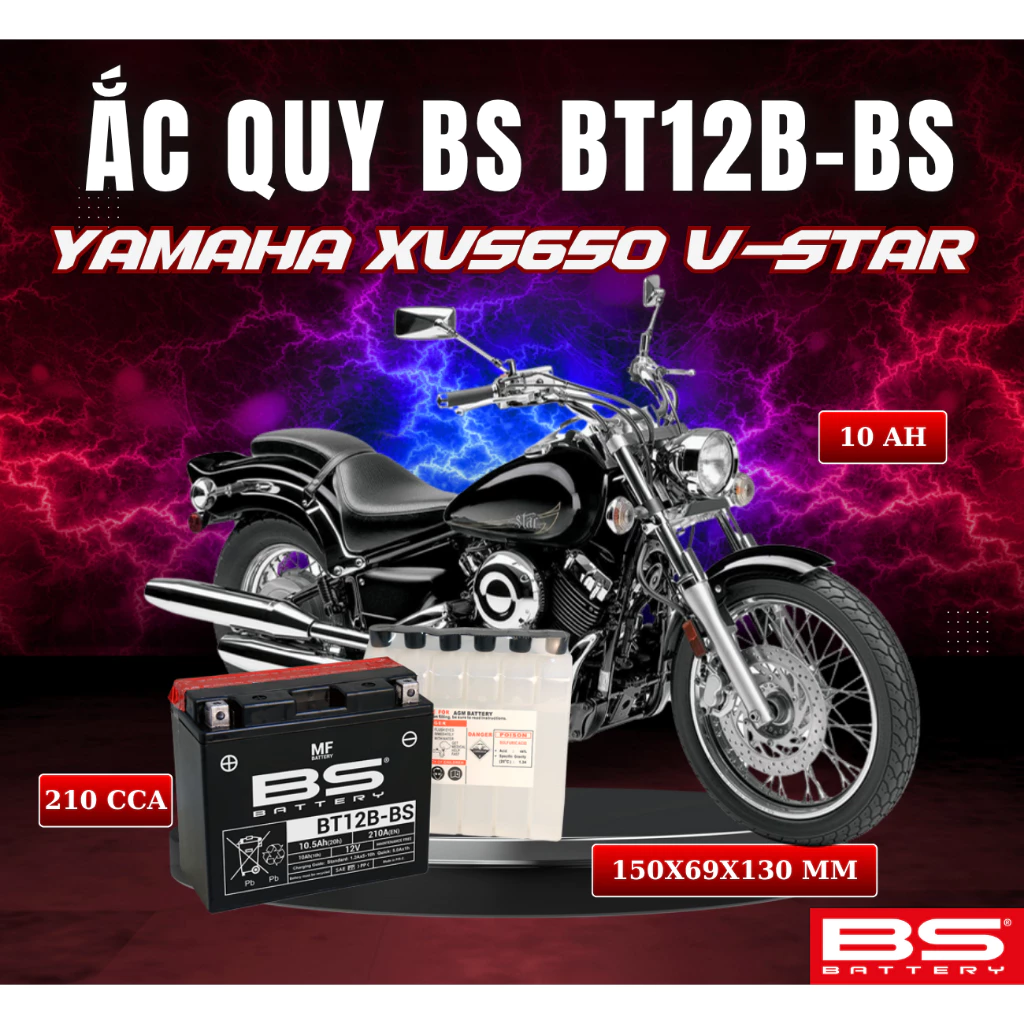 BÌNH ẮC QUY BS BT12B-BS 210CCA YAMAHA XVS650 V-STAR (150x69x130 mm)