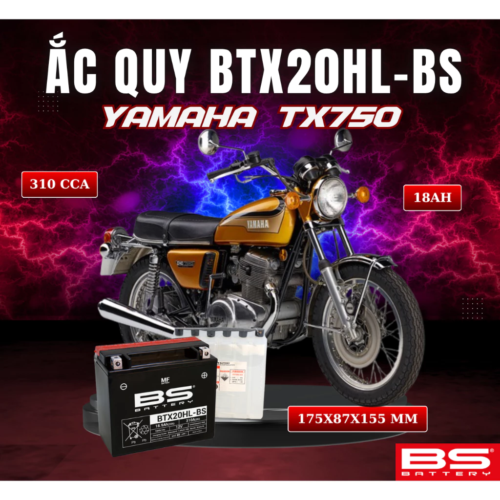 BÌNH ẮC QUY BS BTX20HL-BS 310CCA YAMAHA TX750 (175x87x155 mm)