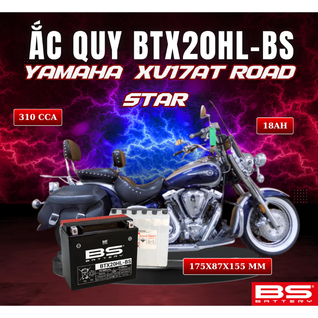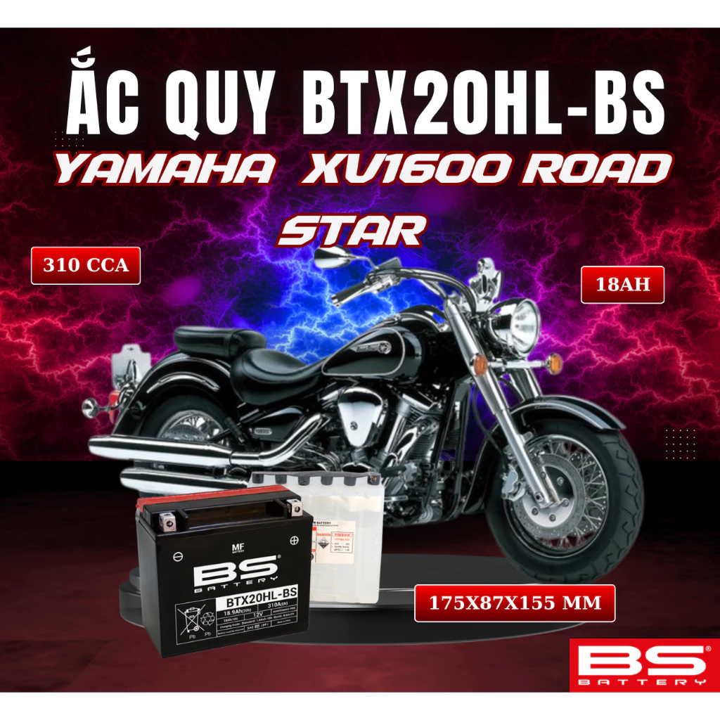 BÌNH ẮC QUY BS BTX20HL-BS 310CCA YAMAHA XV17AT ROAD STAR (175x87x155 mm)