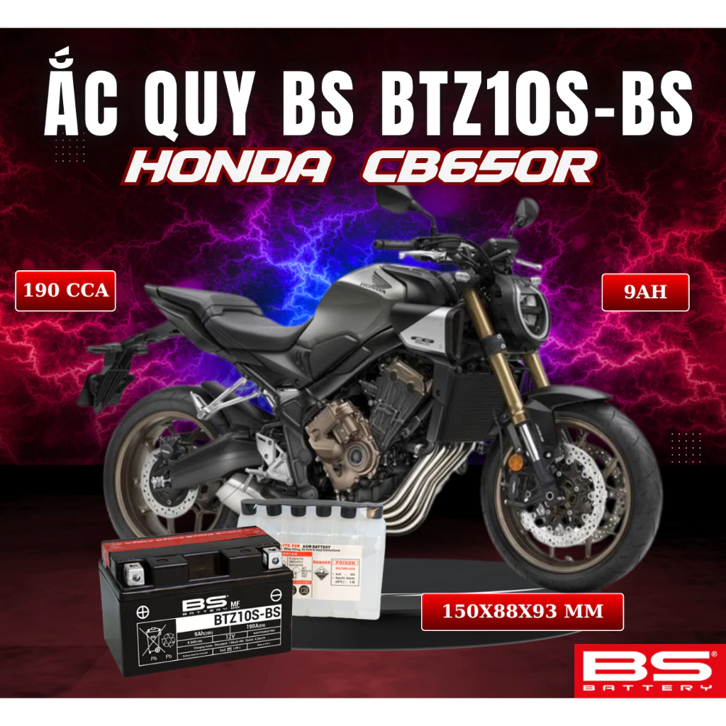 BÌNH ẮC QUY BS BATTERY BTZ10S-BS 190CCA HONDA CB650R/ CBR650R/ CB650F (150 x 88 x 93 mm)