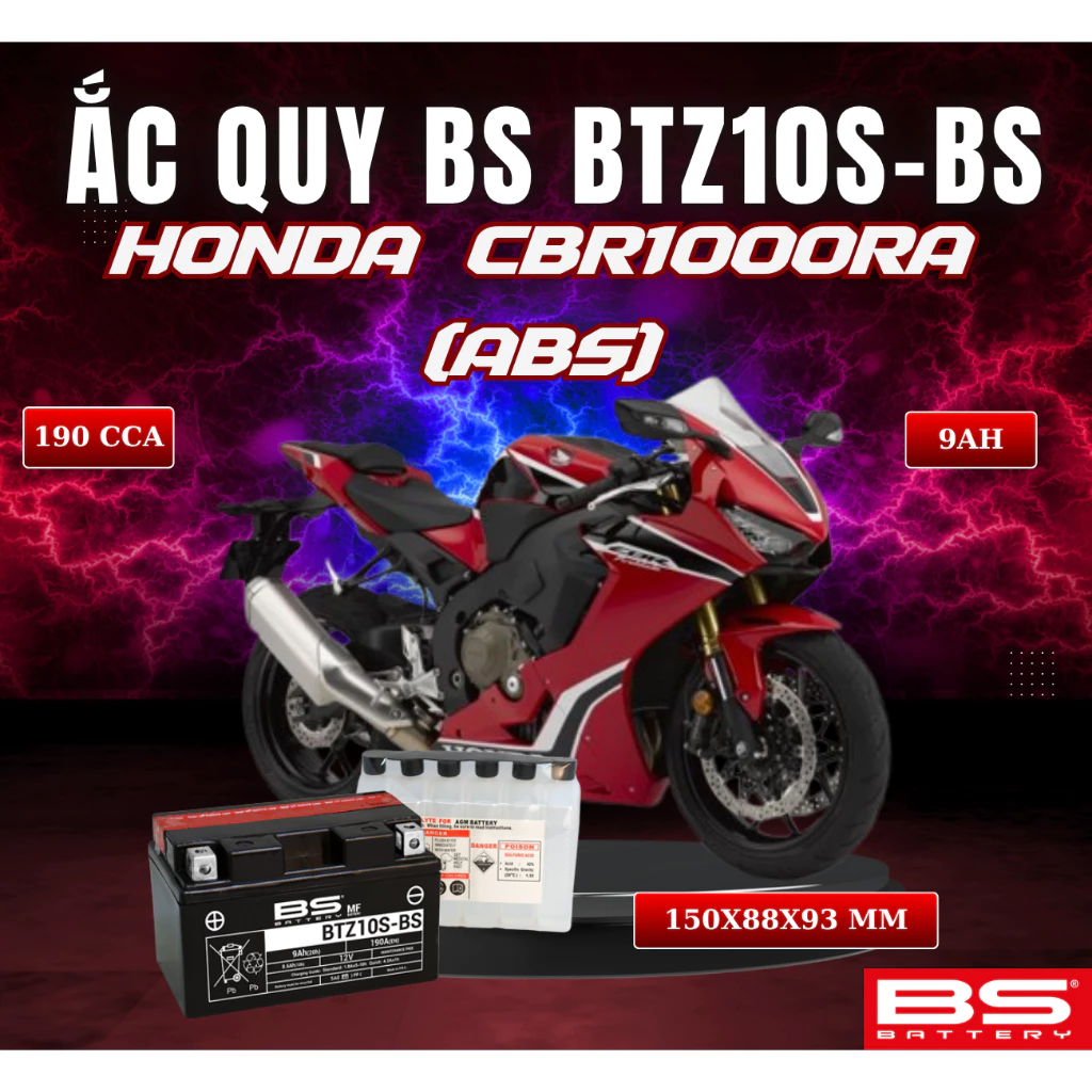 BÌNH ẮC QUY BS BATTERY BTZ10S-BS 190CCA HONDA CBR1000RR (2013-2015) (150 x 88 x 93 mm)
