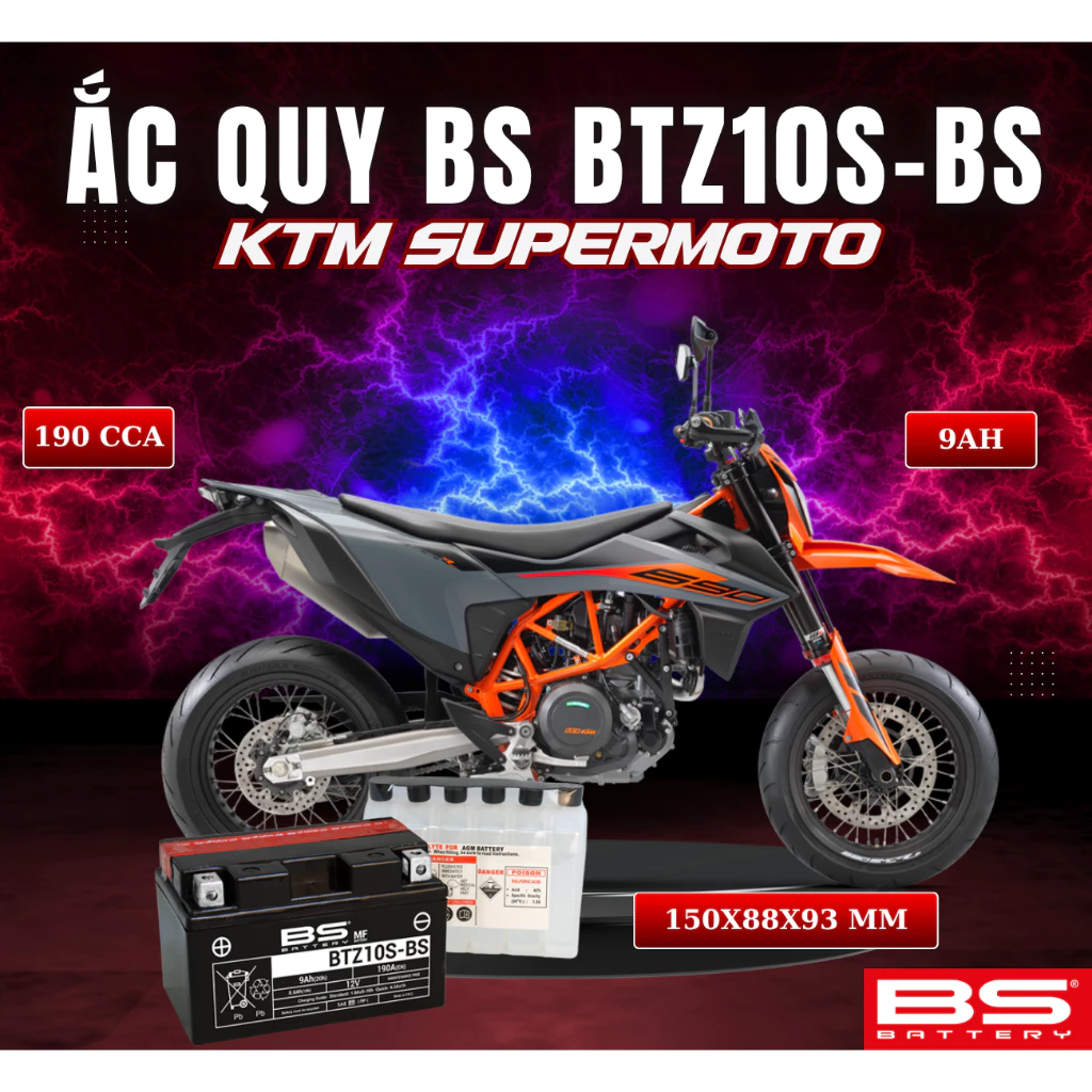 BÌNH ẮC QUY BS BATTERY BTZ10S-BS 190CCA KTM SUPERMOTO (150 x 88 x 93 mm)