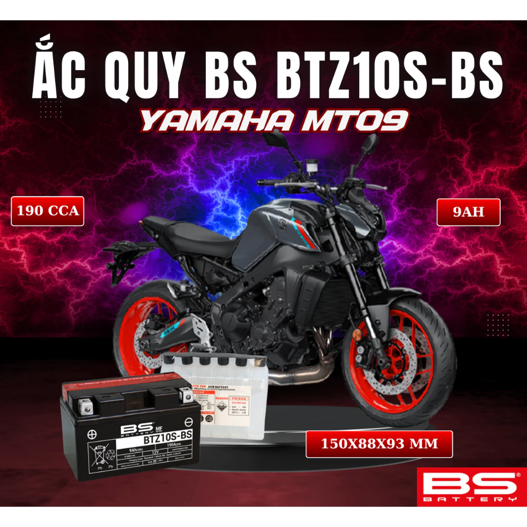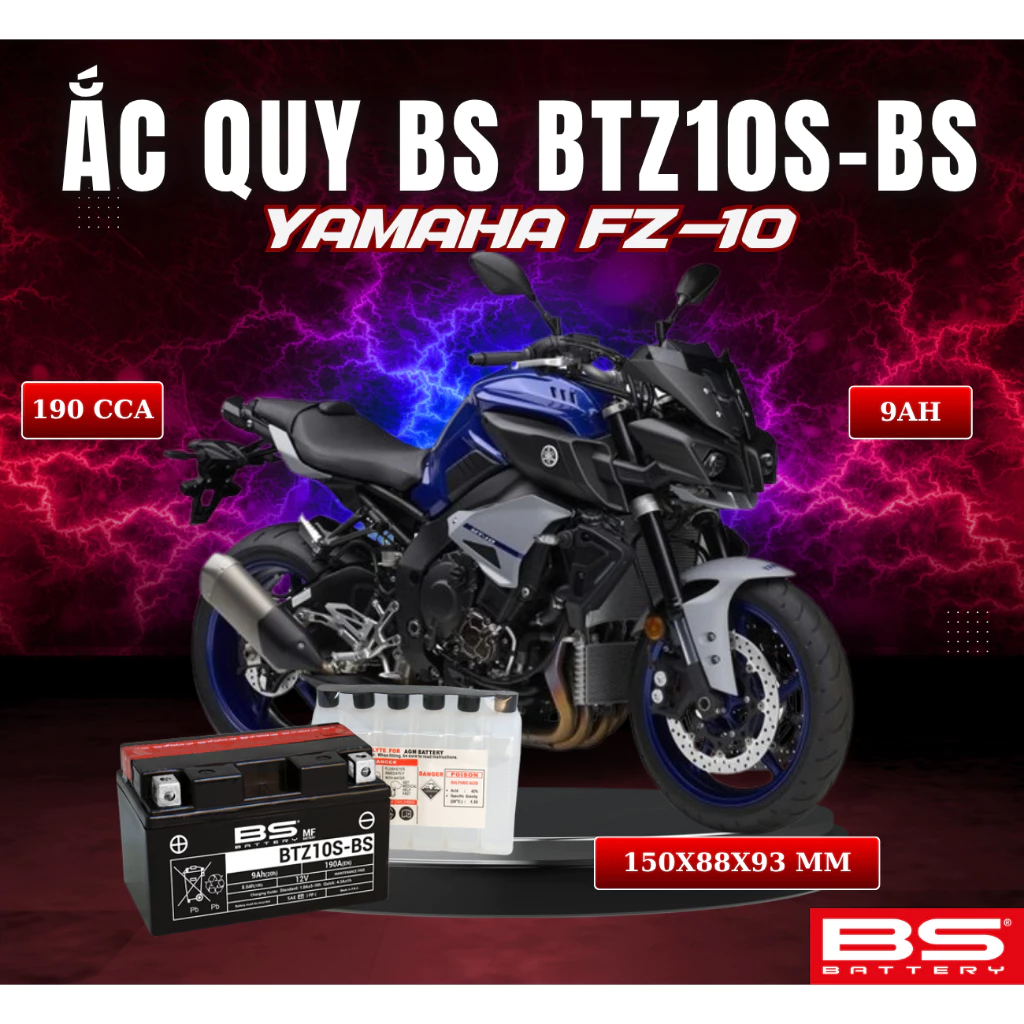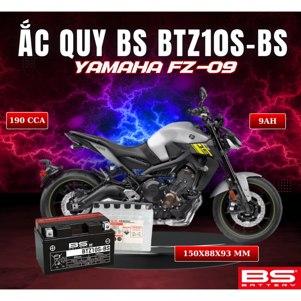 BÌNH ẮC QUY BS BATTERY BTZ10S-BS 190CCA YAMAHA FZ-09 (150 x 88 x 93 mm)
