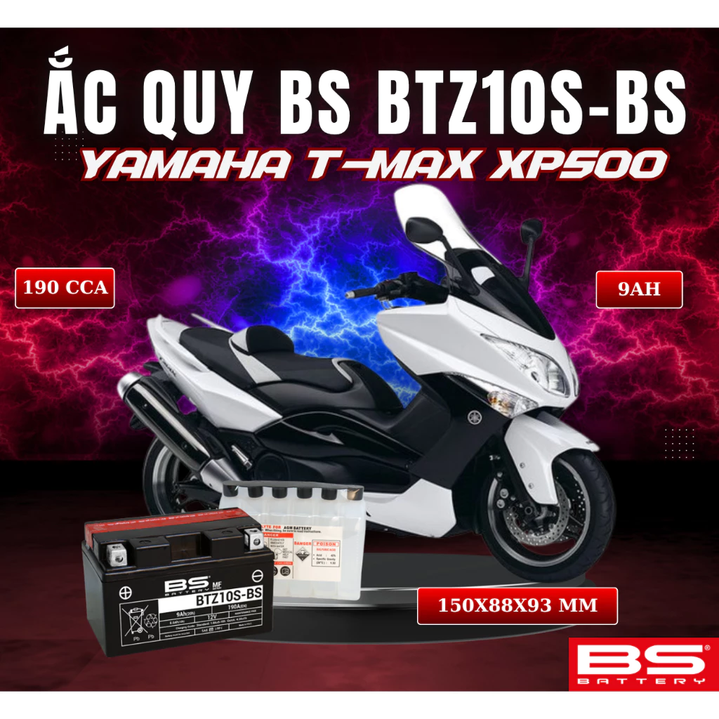 BÌNH ẮC QUY BS BATTERY BTZ10S-BS 190CCA YAMAHA T-MAX XP500 (150 x 88 x 93 mm)
