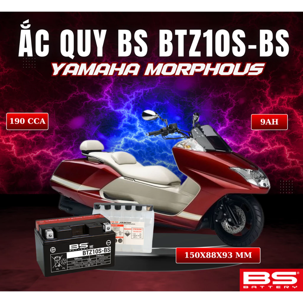 BÌNH ẮC QUY BS BATTERY BTZ10S-BS 190CCA YAMAHA MORPHOUS (150 x 88 x 93 mm)