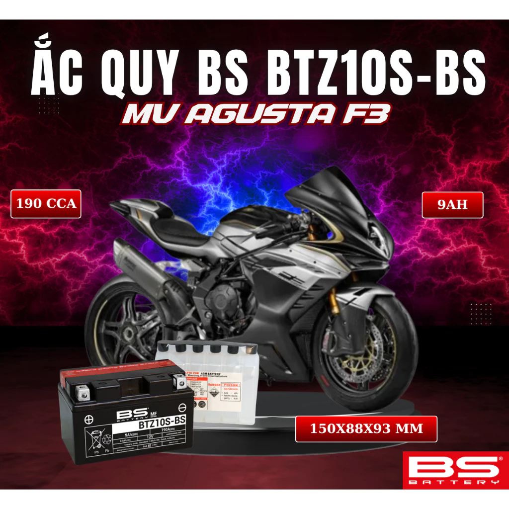 BÌNH ẮC QUY BS BATTERY BTZ10S-BS 190CCA MV AGUSTA F3 (150 x 88 x 93 mm)