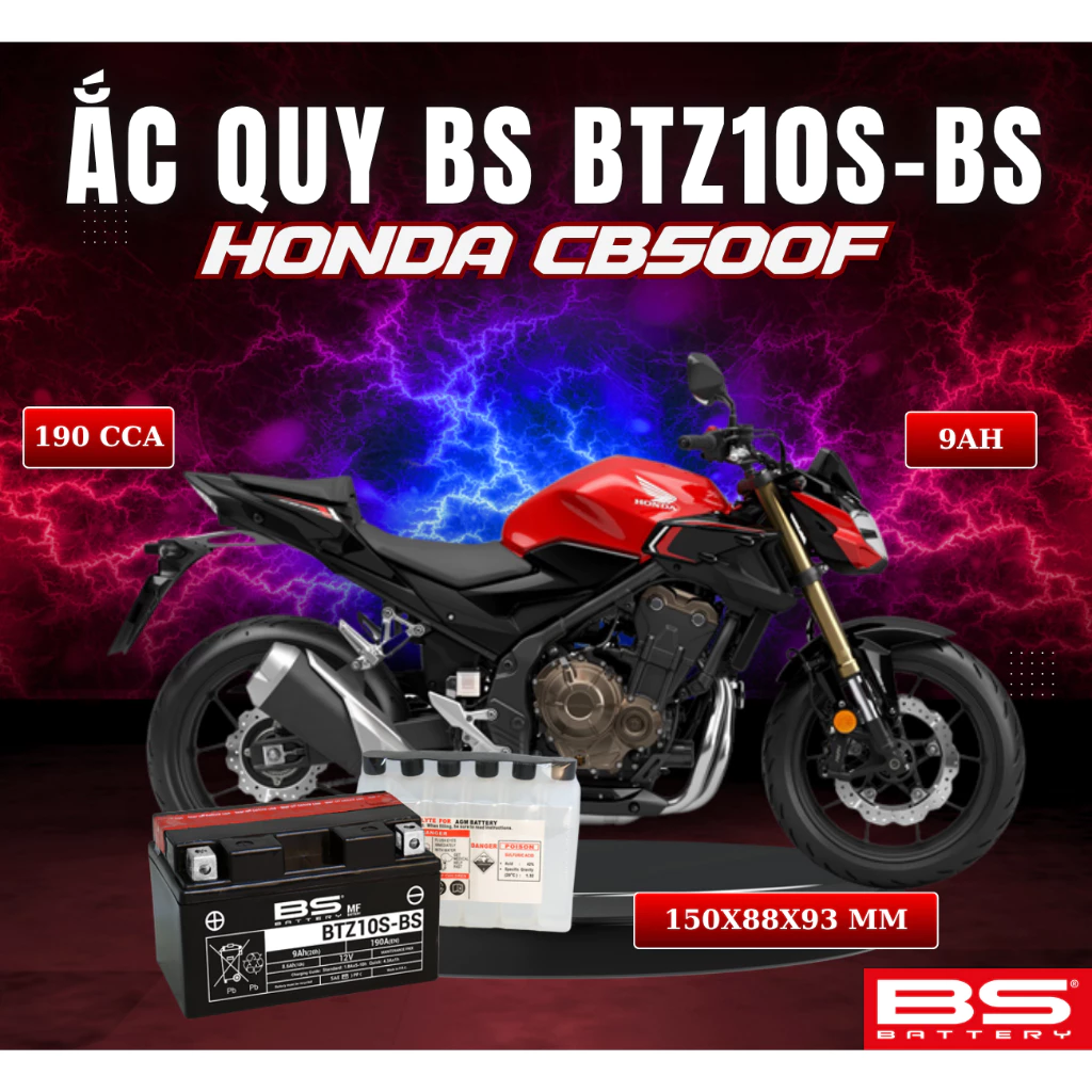 BÌNH ẮC QUY BS BATTERY BTZ10S-BS 190CCA HONDA CB500F (150 x 88 x 93 mm)
