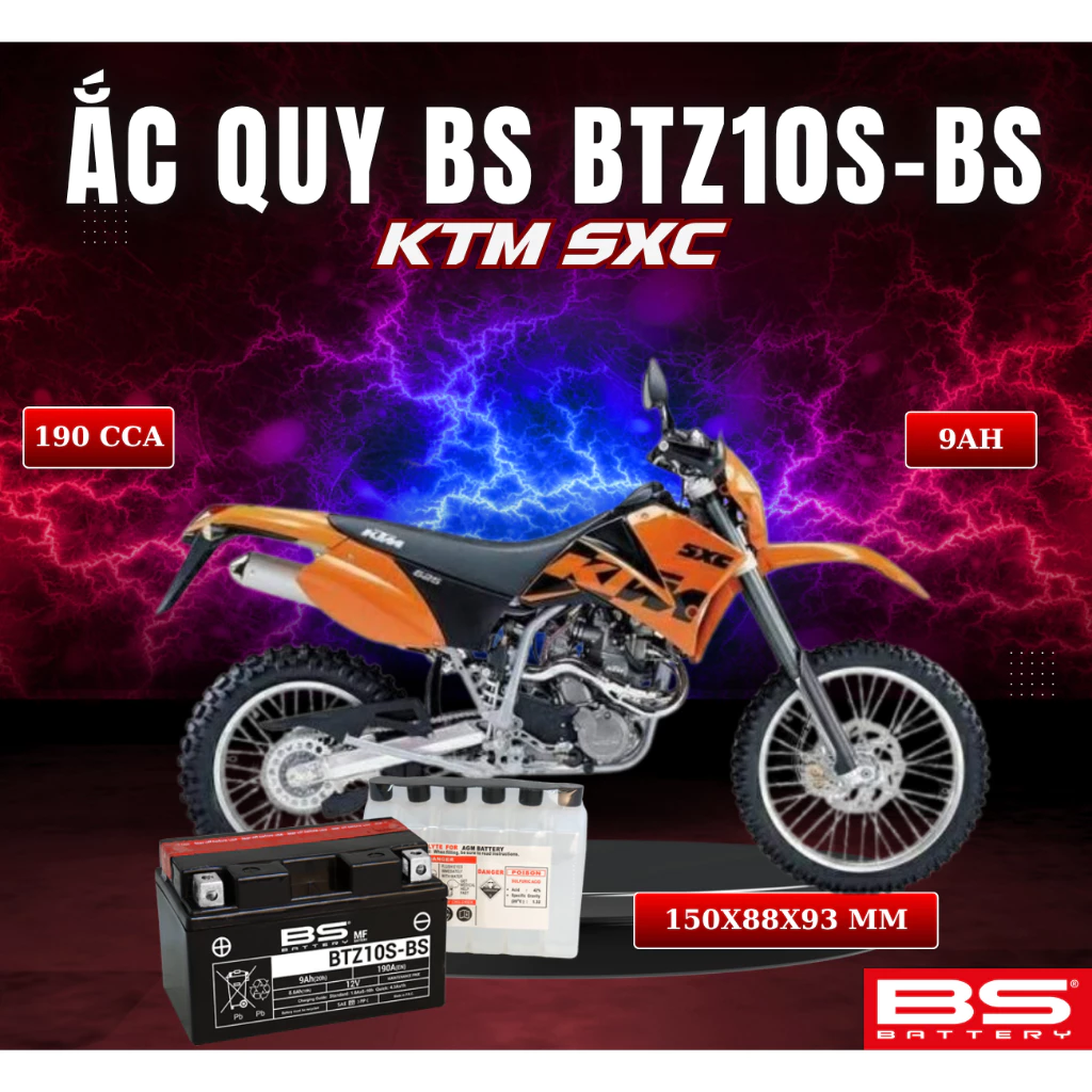 BÌNH ẮC QUY BS BATTERY BTZ10S-BS 190CCA KTM SXC (150 x 88 x 93 mm)