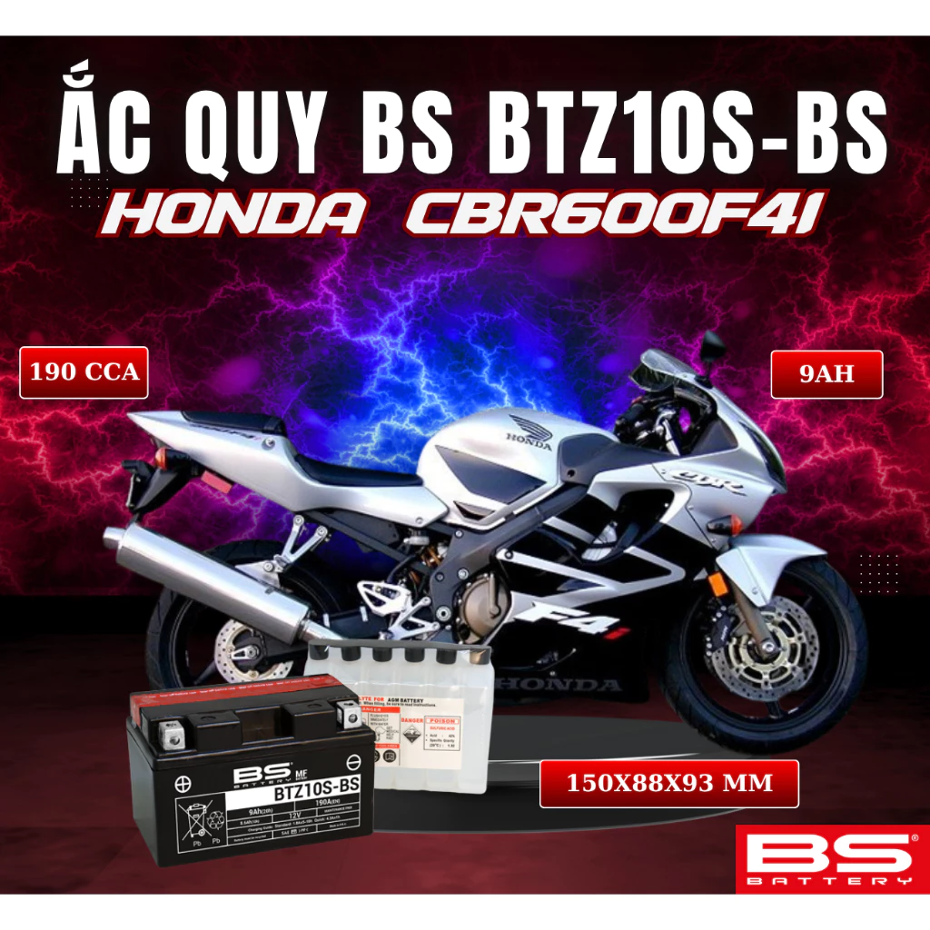 BÌNH ẮC QUY BS BATTERY BTZ10S-BS 190CCA HONDA CBR600F4I (150 x 88 x 93 mm)