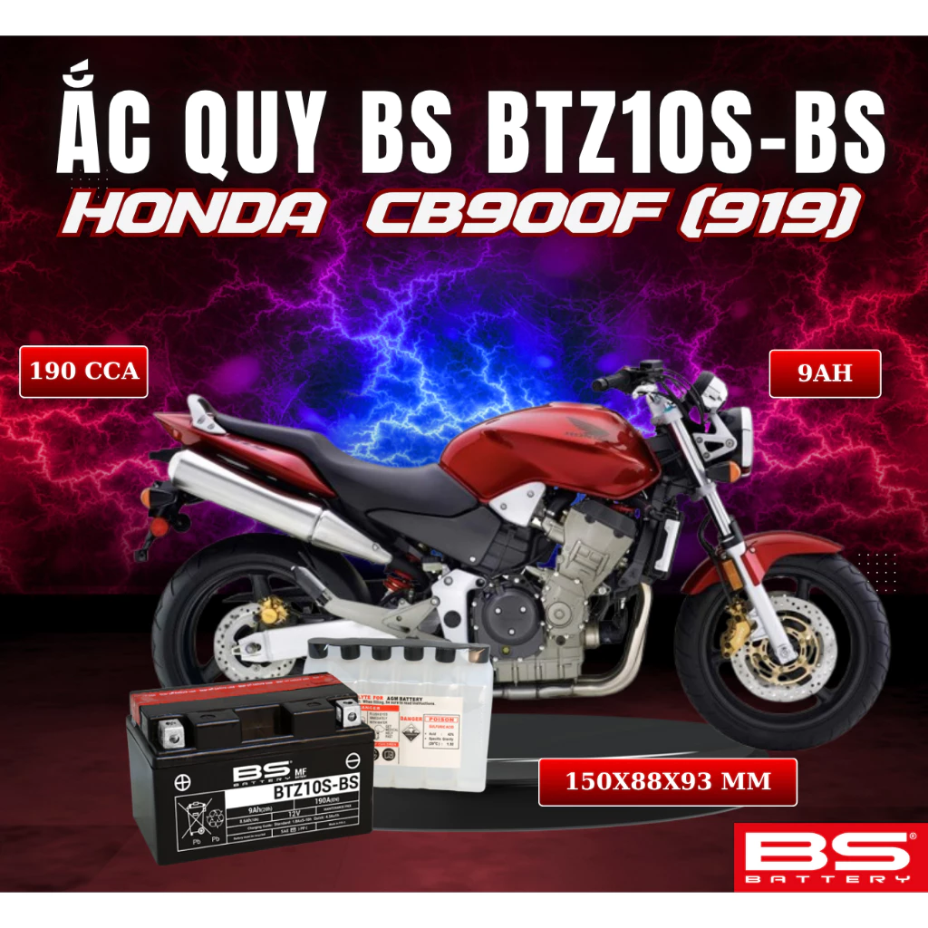 BÌNH ẮC QUY BS BATTERY BTZ10S-BS 190CCA HONDA CB900F (919) (150 x 88 x 93 mm)