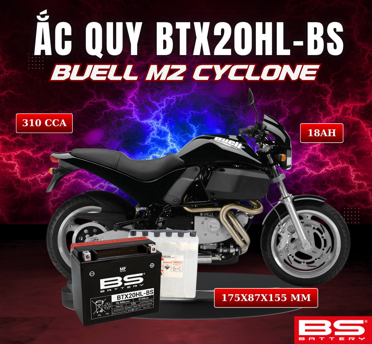 BÌNH ẮC QUY BS BTX20HL-BS 310CCA BUELL M2 CYCLONE (175x87x155 mm)