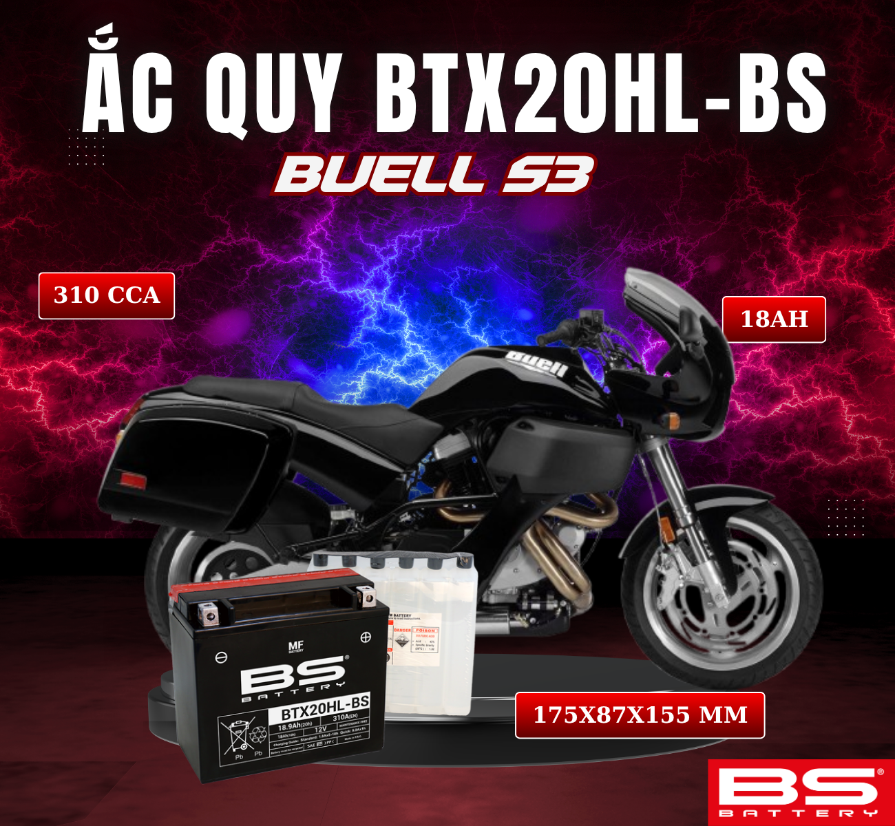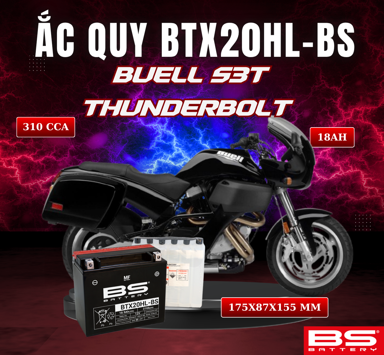 BÌNH ẮC QUY BS BTX20HL-BS 310CCA BUELL S3T THUNDERBOLT (175x87x155 mm)