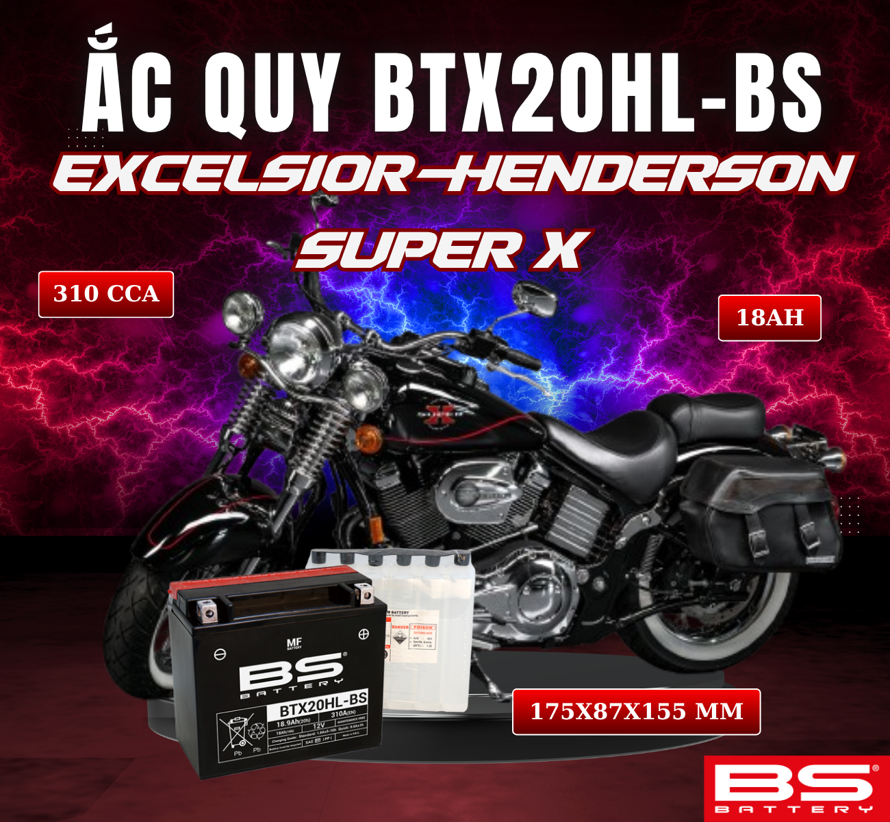 BÌNH ẮC QUY BS BTX20HL-BS 310CCA EXCELSIOR HENDERSON SUPER X (175x87x155 mm)